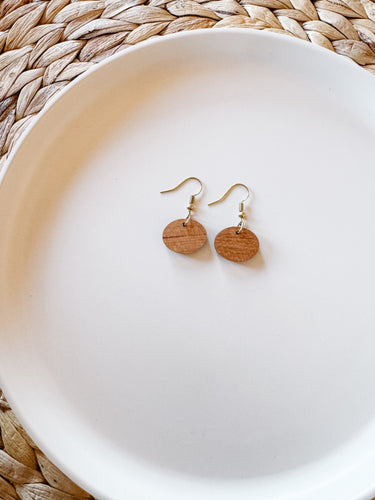 *SALE* Blue Leather Moon & Walnut Wood Circle Dangle Earrings With Raw Brass Hook