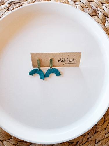 *SALE* Ocean Teal Leather Arc Earrings with Gold Post Stud