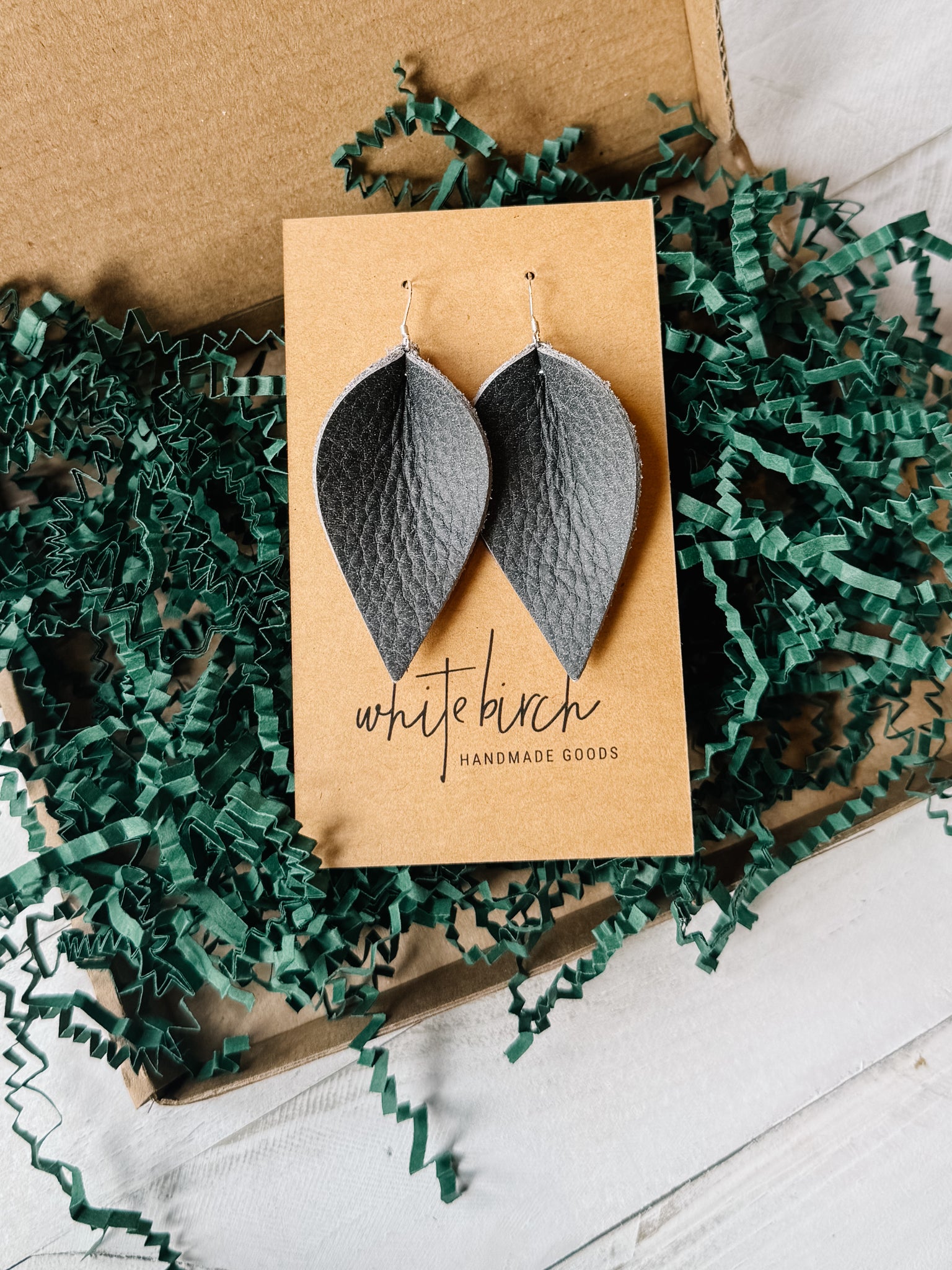Our genuine leather earrings are hand cut therefore each piece is unique. We also pay close attention to the natural variations, wrinkles and creases of the leather which adds to the popular slightly distressed look. Pairs are very closely matched, but some variations are to be expected and your earrings may not be identical to the earrings pictured.